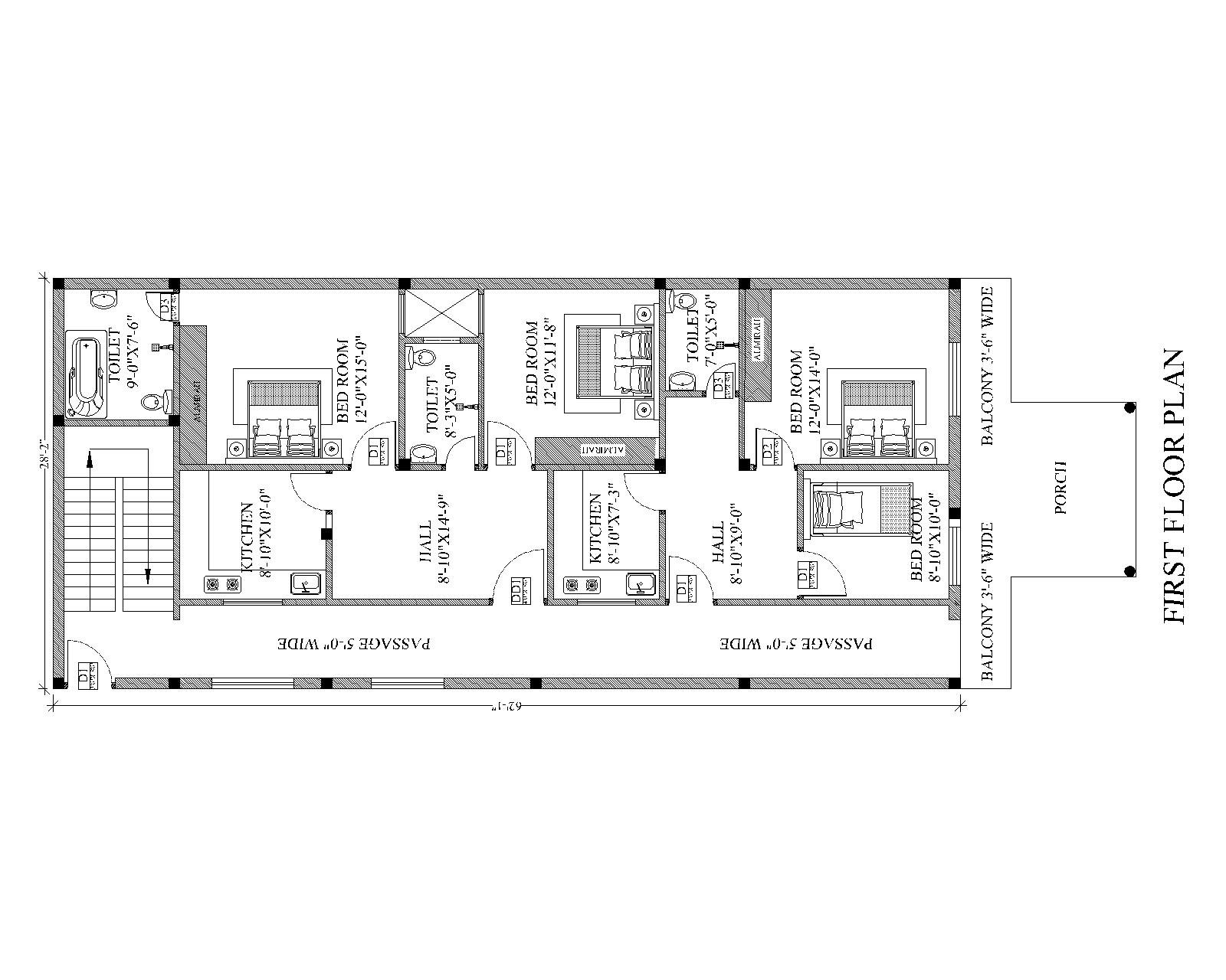 A 2D Plan is the foundational drawing of your building that shows the complete layout from a top view. It includes the arrangement of rooms, walls, doors, windows, circulation spaces, and dimensions. This plan helps you clearly understand how your spaces are organized before construction begins.